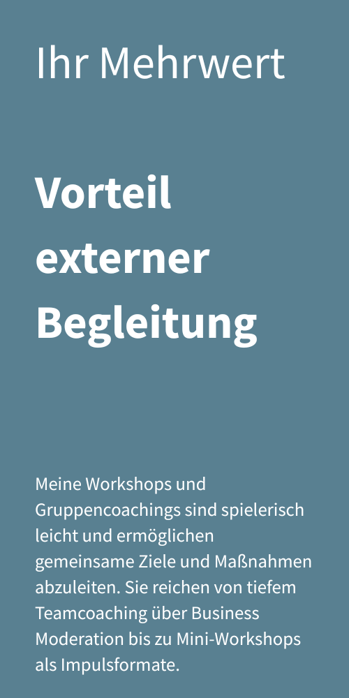 Ich gestalte Workshops und Gruppencoachings im beruflichen Kontext rund um die zentralen Themen der Zusammenarbeit Bedürfnisse, Werte und Stärken. So entstehen Räume für Teams, Gruppen und Organisationen, in denen Verbindung entsteht, Klarheit wächst und Entwicklung möglich wird.