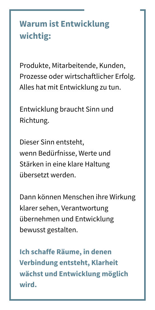 Genau aus diesen Mustern wird sichtbar, warum Entwicklung kein einmaliger Schritt ist, sondern ein Grundprinzip jeder wirksamen Zusammenarbeit.